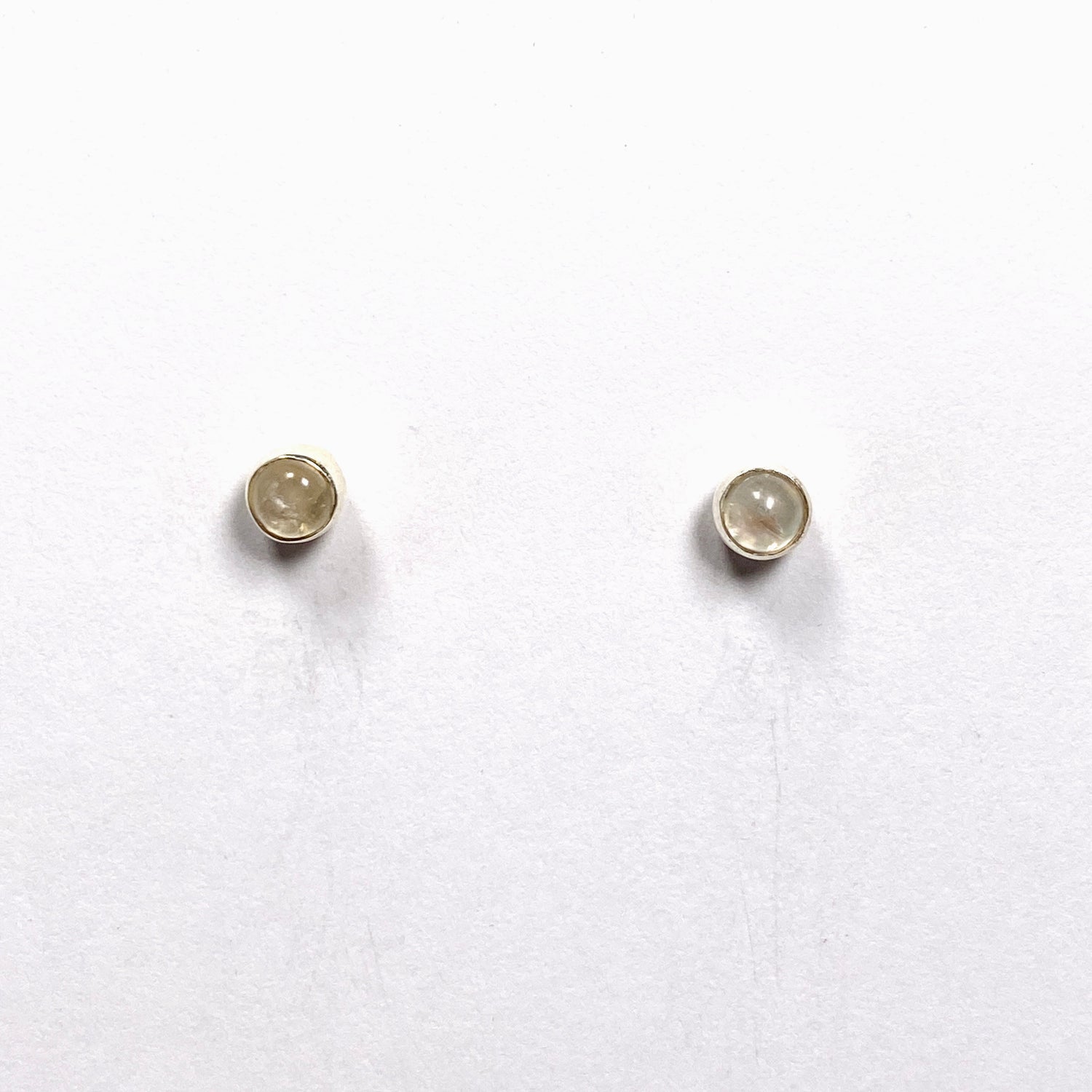Petite cabochon gemstone earrings set in sterling silver. Dazzle in elegance with these petite cabochon gemstone earrings. Made with high-quality sterling silver, these versatile earrings are perfect for any occasion. It's a subtle yet stunning addition to your jewellery collection.