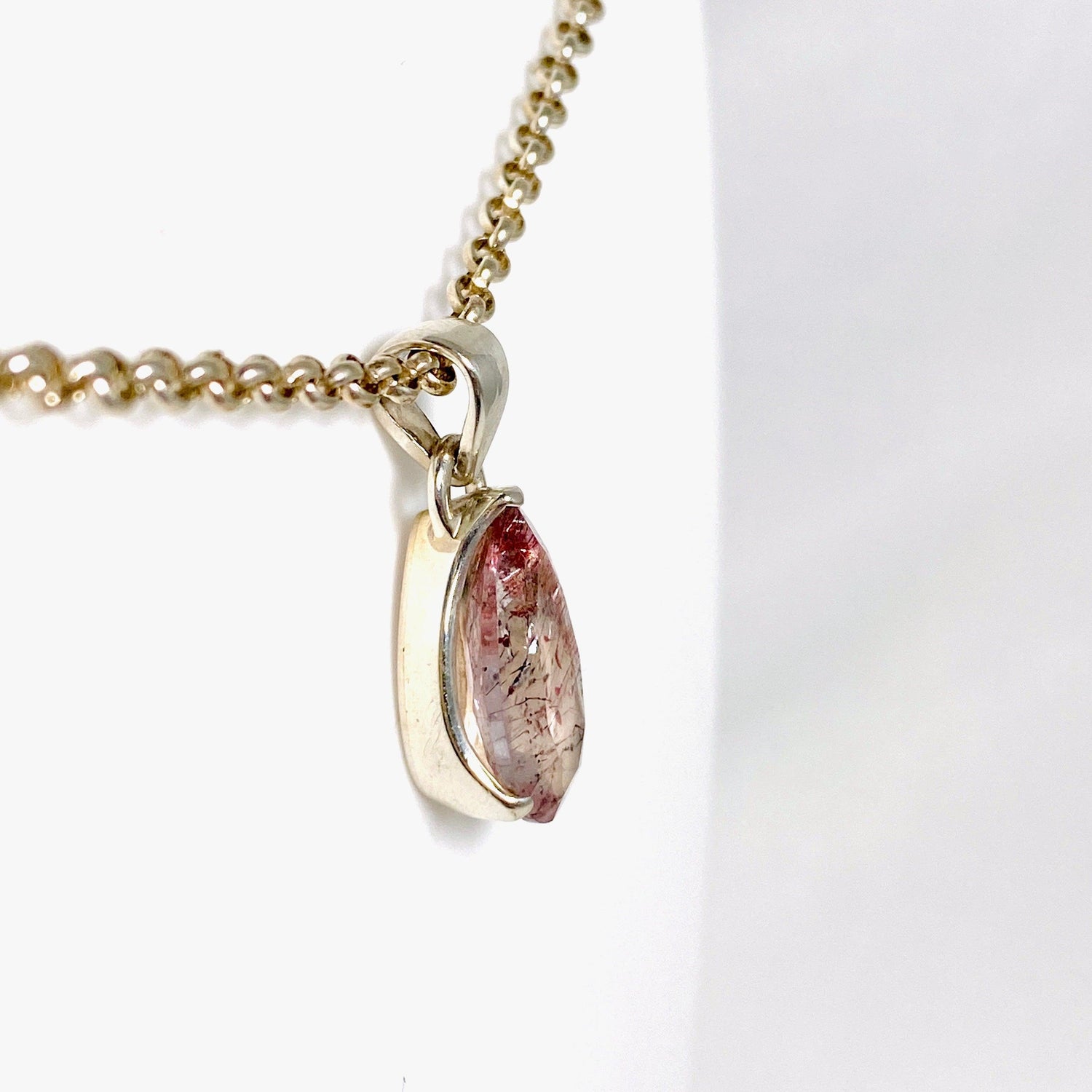 Beautiful Lepidocrocite in quartz faceted teardrop pendant, set in 925 sterling silver
